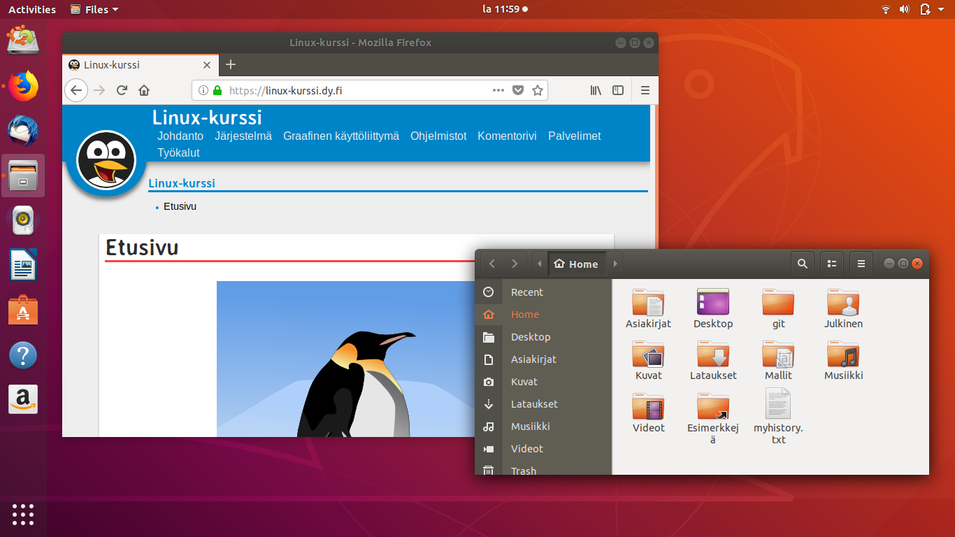 Ubuntun oletustyöpöytä Gnome Ubuntun tyylisellä ulkoasulla.