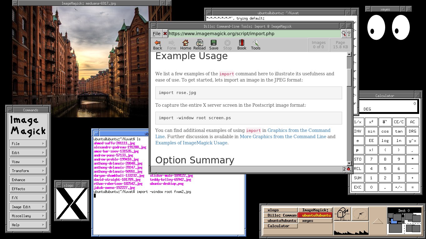 Vanhempi ja 'alkeellisempi' ikkunanhallintaohjelma FVWM2.