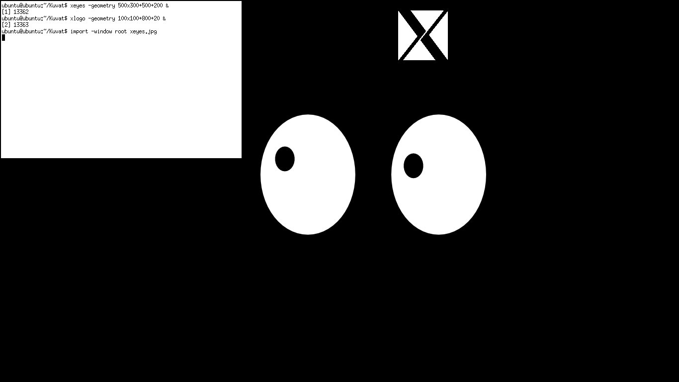 Näille ohjelmille on komentorivillä suoraan kerrottu niiden koko ja sijainti näytöllä. Komennon lopussa oleva &-merkki laittaa ohjelman suorituksen taustalle. Tämä tarkoittaa sitä, että komentorivi ei jää odottamaan ohjelman suorituksen loppumista vaan on heti valmiina ottamaan vastaan seuraavan käskyn. Voit kokeilla, mitä tapahtuu, jos käynnistät ohjelman ilman &-merkkiä. Edustalla olevan ohjelman saa lopetettua näppäinyhdistelmällä ctrl-c.