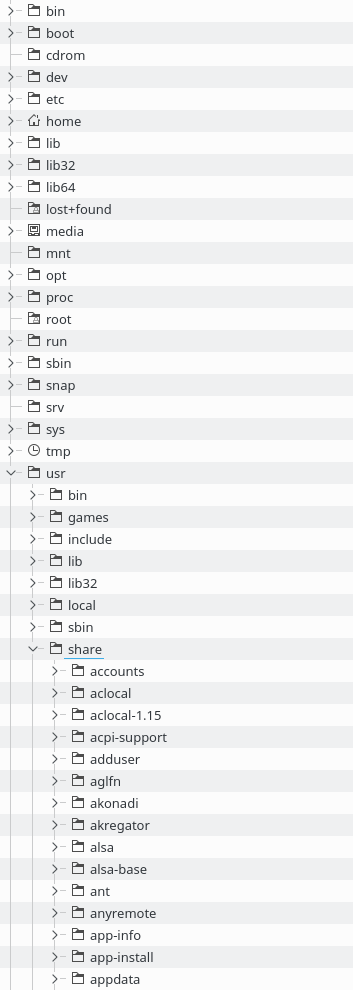 / - Muut osiot ja mediat, kuten usb-levyt ja optiset levyt liitetään, eli mountataan, johonkin hakemistoon puussa.