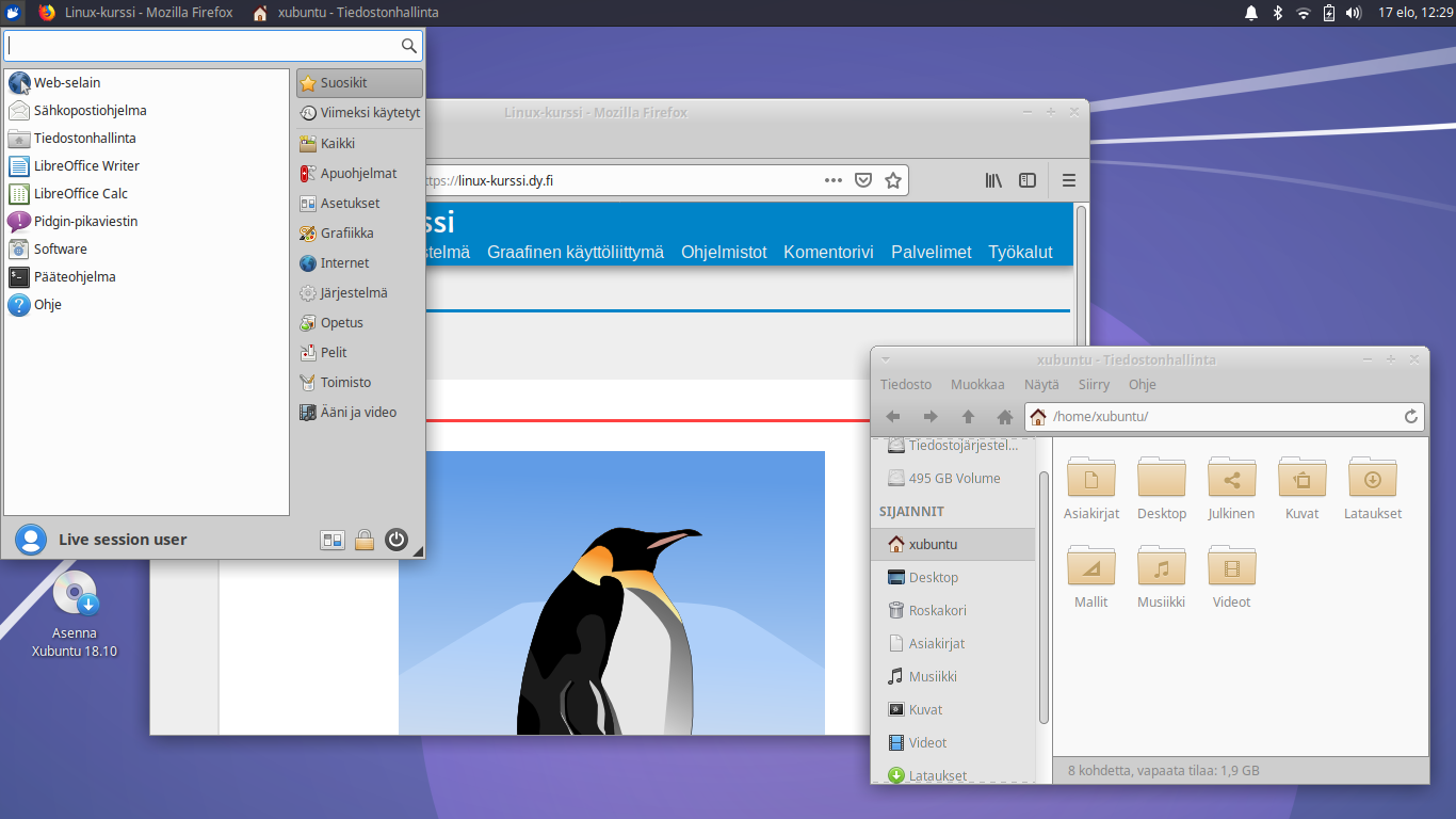 - Käynnistä DVD:ltä tai USB-tikulta jokin seuraavista: Ubuntu, Kubuntu, Lubuntu, Linux Mint, ElementaryOS tai Fedora.