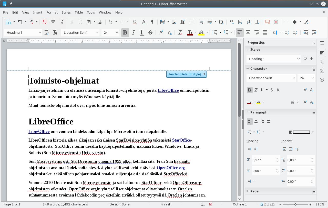 Linux-järjestelmiin on olemassa useampia toimisto-ohjelmistoja, joista LibreOffice on monipuolisin ja tunnetuin. Se on tuttu myös Windows-käyttäjille.