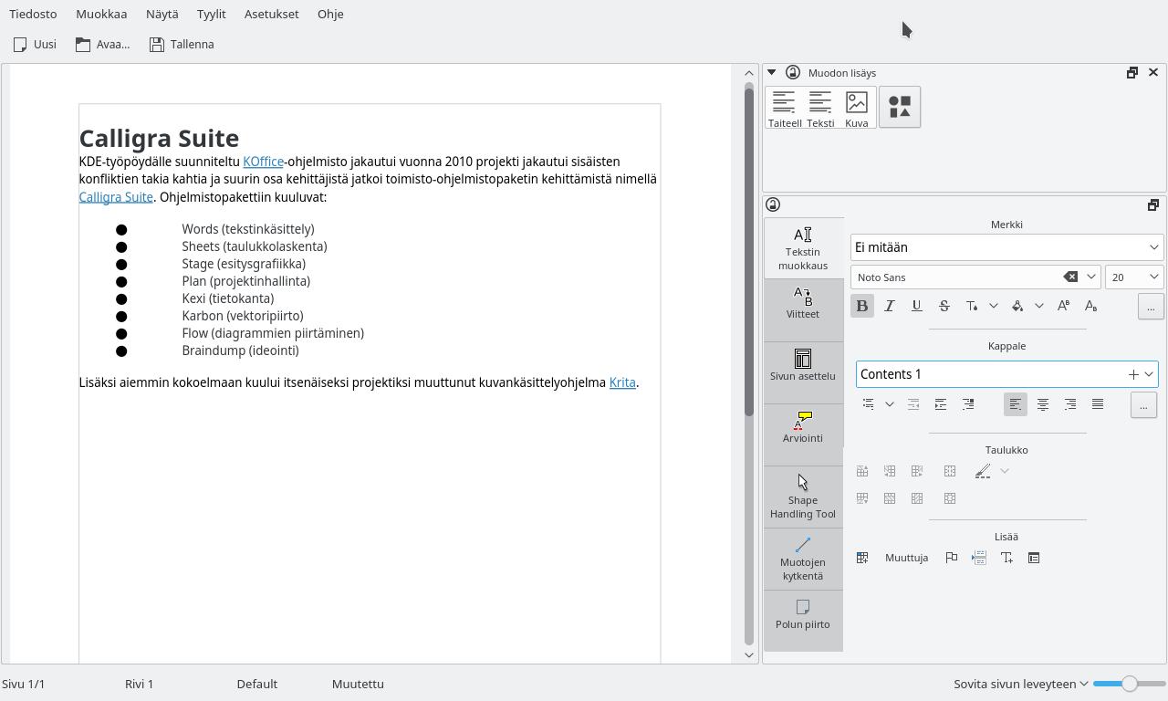 Calligra Suiten Words-tekstinkäsittelyohjelma